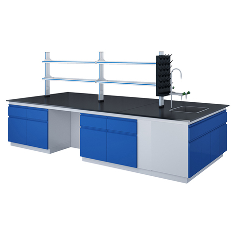 化学生物学すべての鋼の作業台フェノール樹脂ボード実験室用家具アイランドワークベンチ壁キャビネット付き
